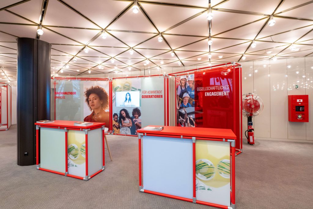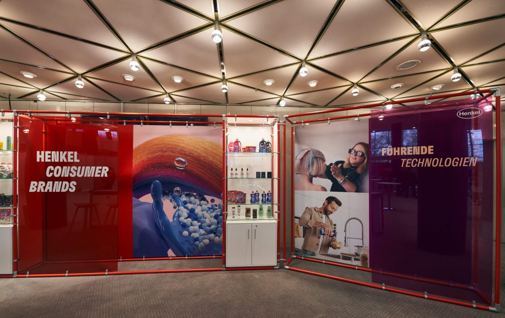 We developed not only a stage concept, but also exhibits that embody the core of Henkel's corporate design. From the first draft on paper...