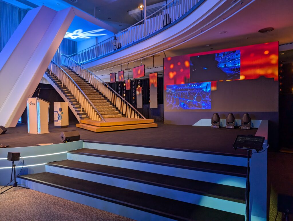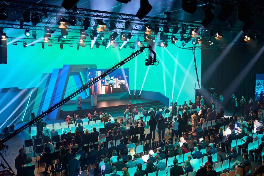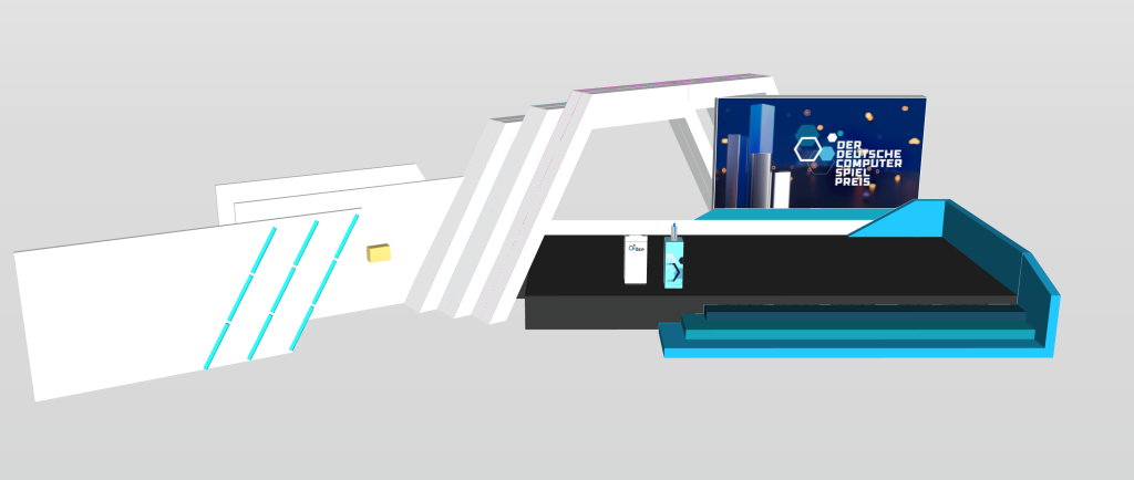 Das Bühnendesign haben wir komplett verantwortet und im Auftrag der Game Events GmbH und unseren Partnern aus dem Bühnenbau vom ersten Rendering bis hin zur fertigen Stage umgesetzt. Eine holistische Betrachtung der Produktion unter Einbezug des Lichtsdesigns, Eventablaufes und Audiodesigns ist ein stimmiges Gesamtbild entstanden, das auf den individuellen Charakter der Veranstaltung einzahlt und diesen sogar mit prägt.